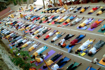 Bei uns gehört es zu jedem mehrtägigen Seminar dazu, dass wir morgens Yoga machen, da im Tantra die Beweglichkeit von Vorteil ist.